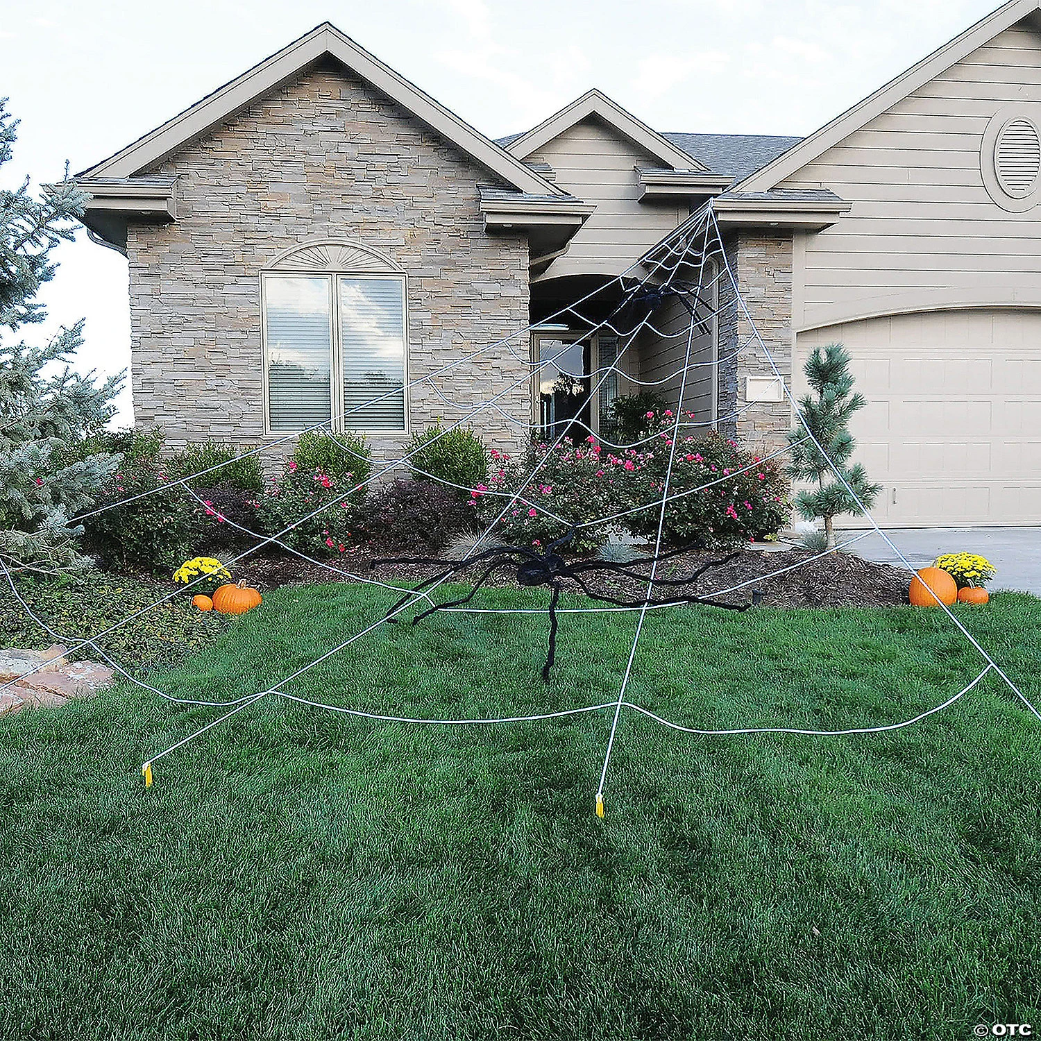 Easy set-up with maximum effect! Our giant 24-foot Spider Yard Rope Web will light-up your haunted setting in a big way with 210 warm white LEDs! Lights have 8 different modes with a remote control, like flashing, strobing, fade-on and off, or steady-on. Triangular shape allows you to hook up to your gutter or a tree branch, then spread out the bottom of the web and anchor with the supplied 5 ground stakes. Comes with the giant spider web, gutter hook, and 5 ground stakes. Weather resistant battery pack requires 3 AA Batteries, not included. Use indoors or out!