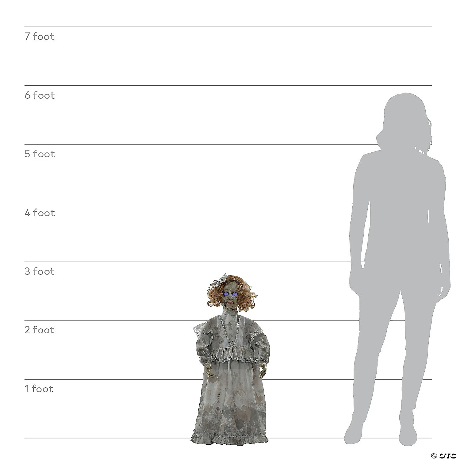 Cracked Victorian Doll Prop. The perfect addition to any haunted house or horror themed party! Standing at 32″ tall, the hollowed-out eyes of this static dreadful doll prop will glow an eerie blue as she says one of five phrases with each activation of her motion/light sensor such as “(Giggle) I just was thinking how funny you would look without eyes, too.”, “Sally was mean to me, once. Now..she ft.ll never be mean again (giggle).”, “Ring around the rosy, pocket full of posiess, ashes, ashes we all fall down”, “Hello there. “Giggle”, “I see you.” Features easy q.uick-connect push-button assembly posable arms.Requires 3 AAA batteries (not included).Special Shipping Information: This item ships separately from other items in your order. This item cannot ship to a P.O. Box. This item may be subject to additional processing days.ITEM IS NOT ELIGIBLE FOR EXPEDITED SHIPPING