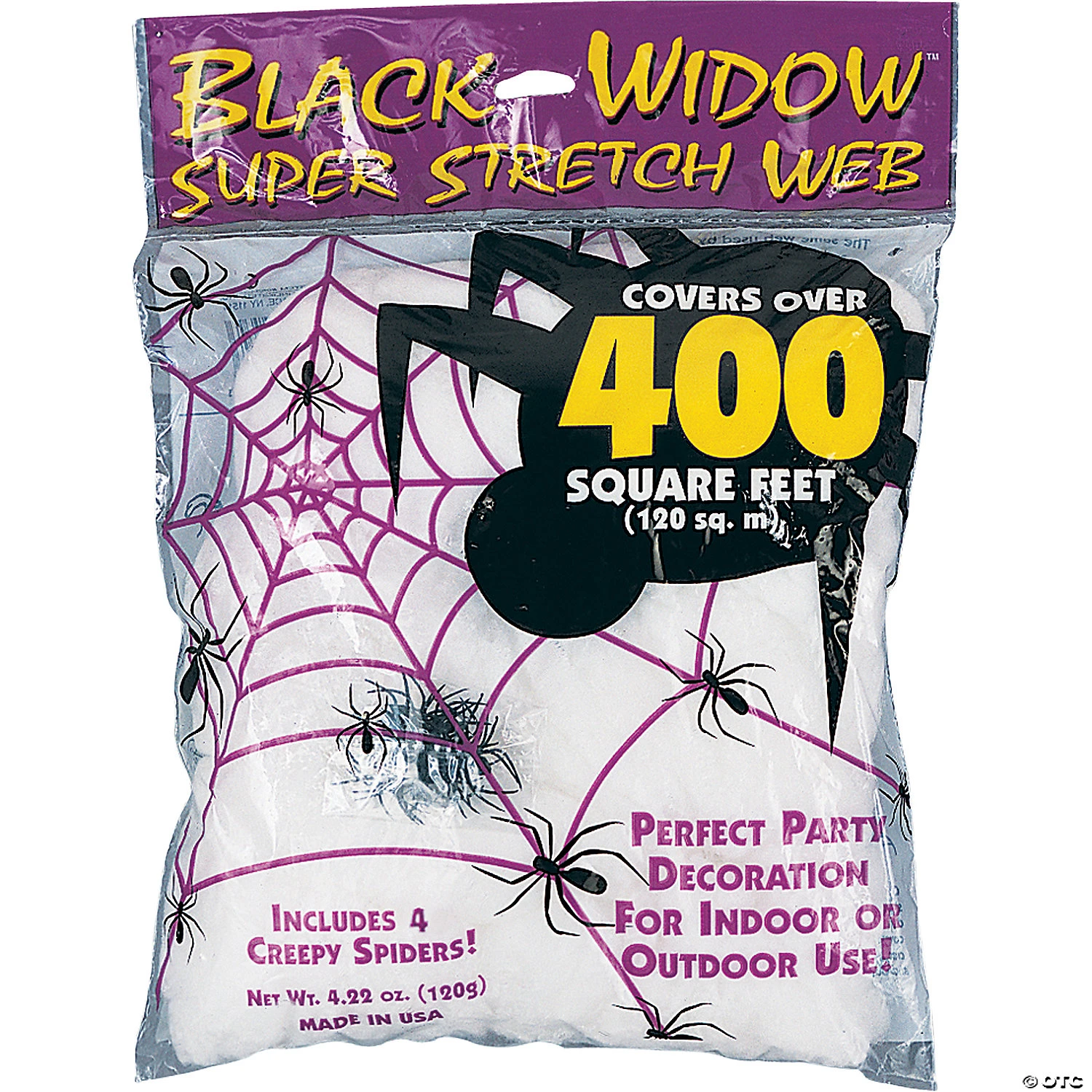 Spiderweb White. Stretch Over A Given Area For Creepy, Haunted Look!Stretch the spiderweb over a given area for creepy, haunted look. Perfect for indoor or outdoor use to create a spooky or creepy mood at your next gathering. Polybagged and headered. 4.22oz. covers 400 square feet.
