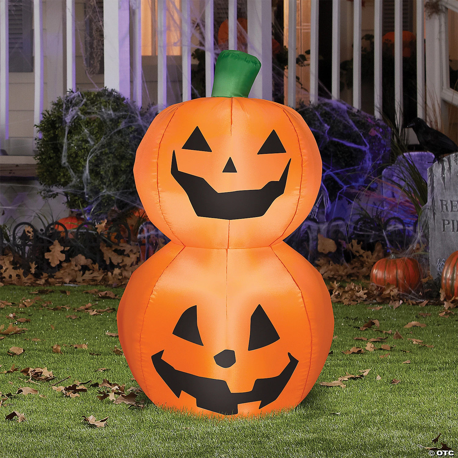 Add our Happy Pumpkin Stack to your Halloween yard setup for a fun display. Two Jack o Lanterns sit in a stack with happy grins which make you smile, too. Great for households with small children, because these aren’t too scary! Setup is super simple. Just plug it in, stake it down and watch the magic unfold. Display this cute Halloween decoration as a standalone or combine it with other Airblown® Inflatables to create a custom scene. Includes everything needed for easy outdoor setup. Lights up with bright efficient LED lights. Self inflates in seconds, and deflates easily for compact storage. For indoor or outdoor use. Measures 26.77 inches x 26.77 inches x 42.13 inches tall.