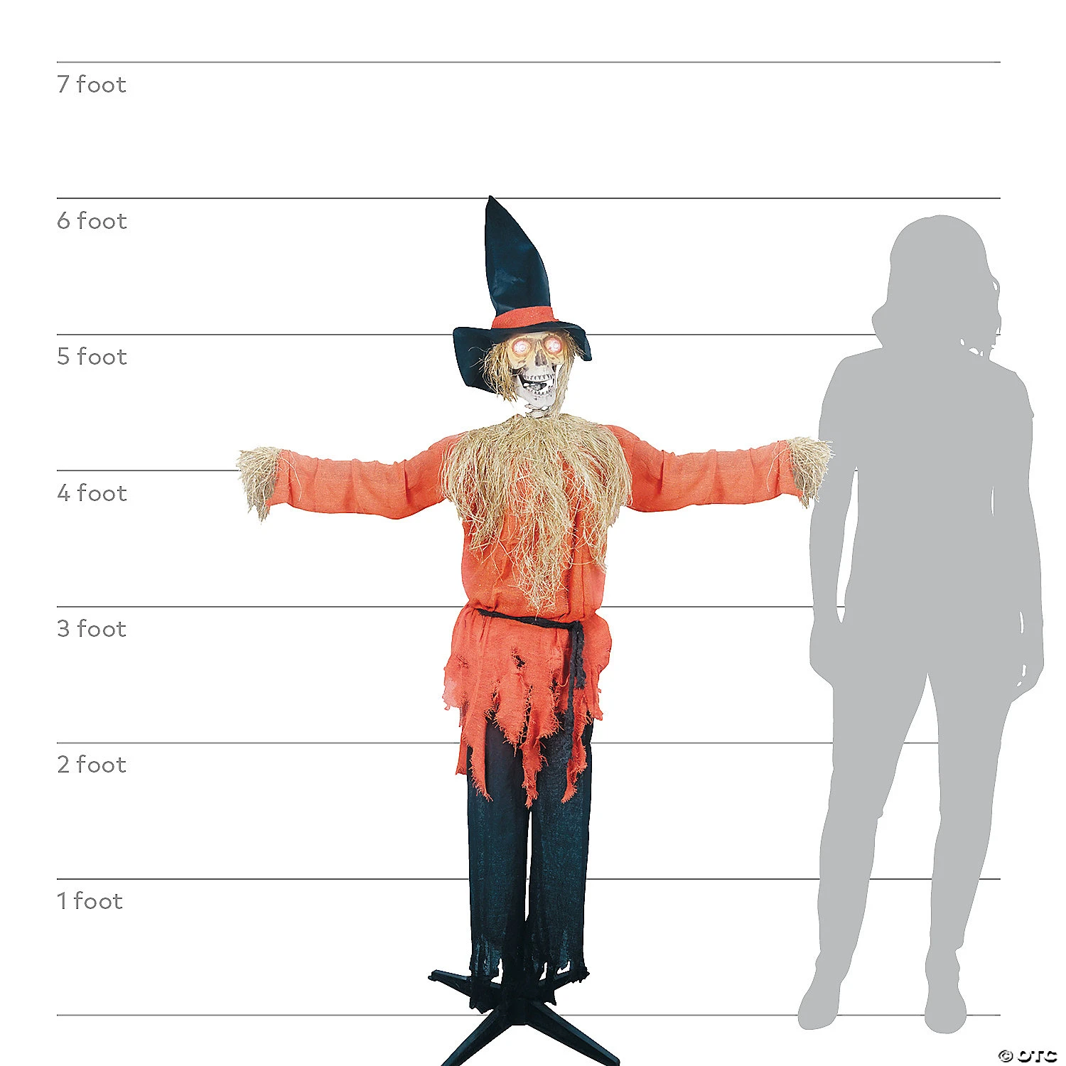 6 feet tall Scarecrow with flashing eyes and moving mouth as it says all things Halloween. Requires 3 AA batteries not included. Sound activated. 72 x 46 x 7 inches