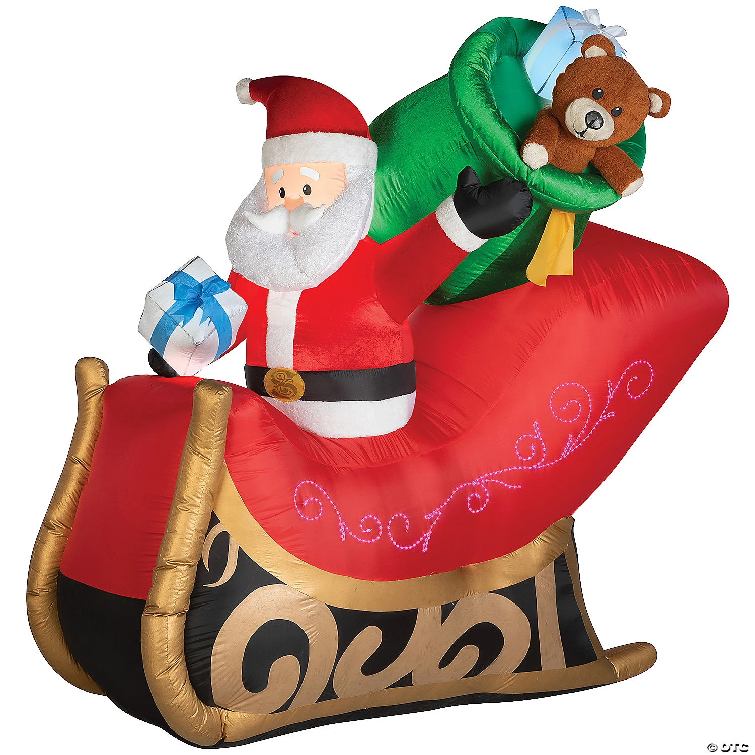 Deck the yard with an Airblown® Inflatable sleigh with presents driven by Santa! Featuring ornate swirls of micro LED lights and metallic fabric accents, this delightful outdoor inflatable makes an eye-catching addition to your Christmas decorations. Setup is super simple. Just plug it in, stake it down and watch the magic unfold. Display this whimsical holiday decoration as a standalone or combine it with other Airblown Inflatables to create a custom scene. Includes everything needed for easy outdoor setup. Lights up with micro LED and warm white incandescent lights. Self inflates in seconds, and deflates easily for compact storage. For indoor or outdoor use. Measures 78 inches x 36 inches x 78 inches.
