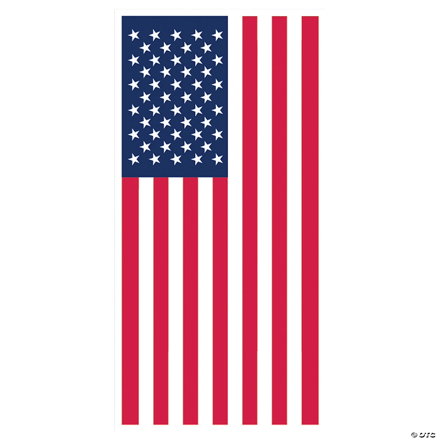USA Flag Door Cover. Would be a fantastic addition at a July 4th celebration! Decorate your door this Independence Day with our! American flag door cover measures 30in. x 5ft . Polyethylene sheet. Indoor/Outdoor. Just the accessory you need for July 4th, New Years, and other fun patriotic productions and festivities! Attach as desired. Indoor/Outdoor use.