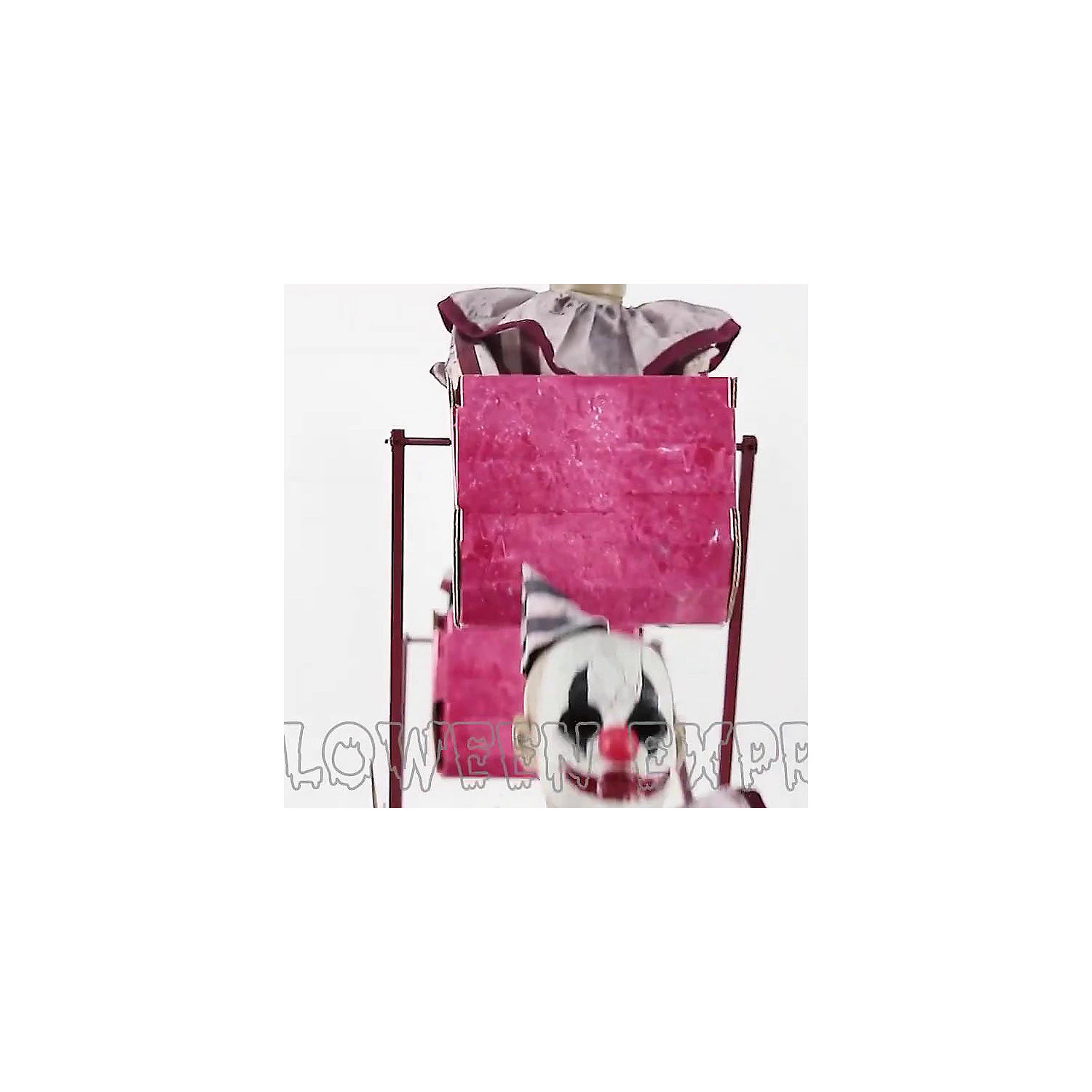 Everybody’s favorite ride at the carnival! The Animated 72-inch Ferris Wheel Prop is re-imagined with 5 creepy little clowns riding around and around for all eternity. Each clown is unique. Eerie carnival calliope music plays while the Ferris Wheel from Fun Land creaks as it endlessly turns. Plug the UL power adapter into any standard outlet and choose from Steady-On, Light Sensor, or Step-Here Pad (included) activation options. The Light Sensor works up to 6.5 feet away and works in all lighting conditions – bright light to no light! Item includes Volume Control. Easy-to-assemble quick-connect poles. Complete instructions are included.