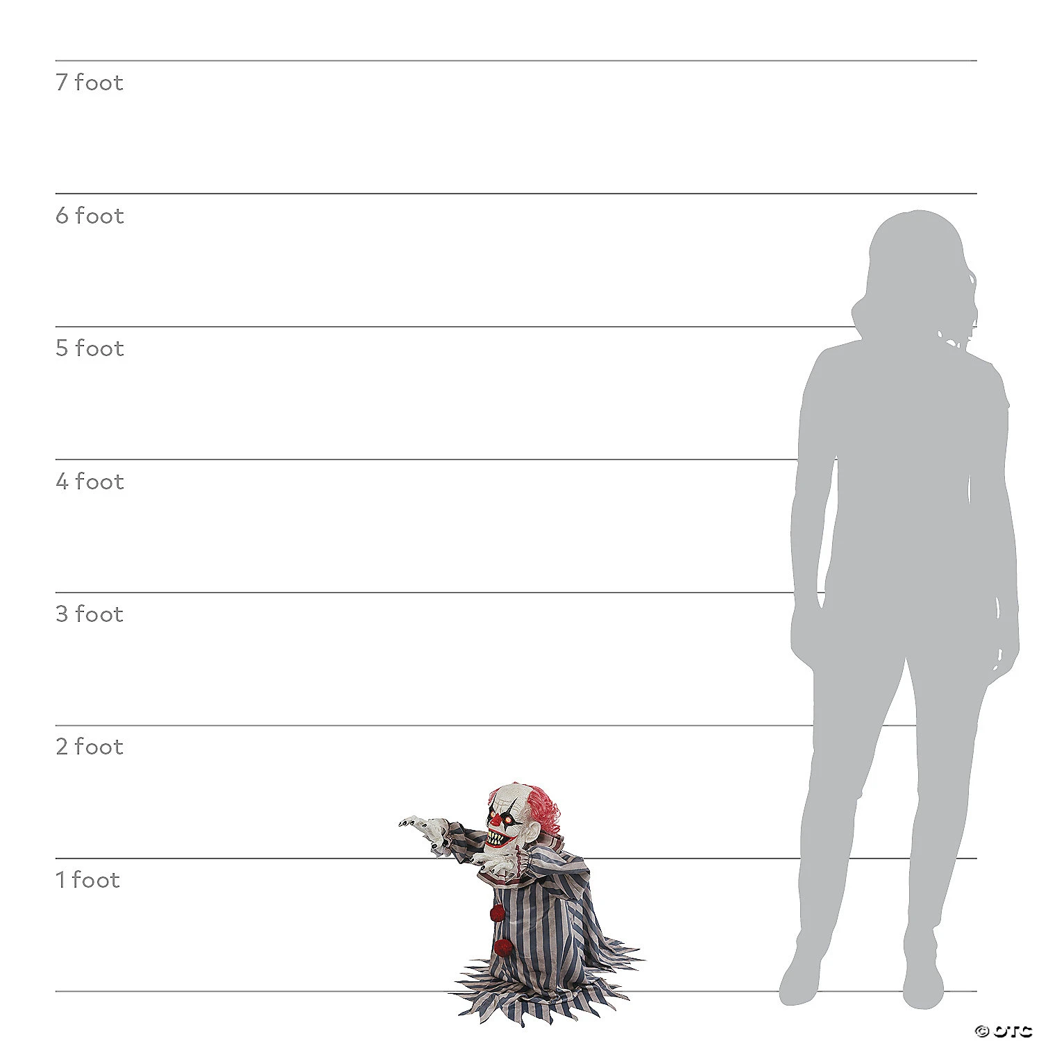A chilling addition to Halloween decorations. This creepy clown springs forward and giggles grimly as LED-lit eyes glow. Terrifying carnival music plays when he’s activated, using either step-pad or infrared sensor options. Indoor use only.• Material: Polyester.• Size: 18″Includes:• UL power cord• Step activation pad or infrared sensor activation options No P.O. Boxes — item must ship to a physical address.