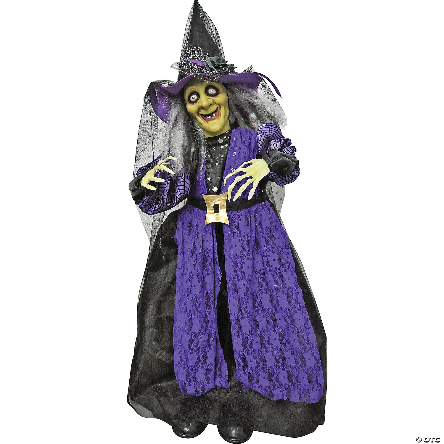 Standing Animated Witch 31 In.She ft.ll cast her spell on you! 31″ standing witch that wobbles back and forth, and screeches out her witch phrases.