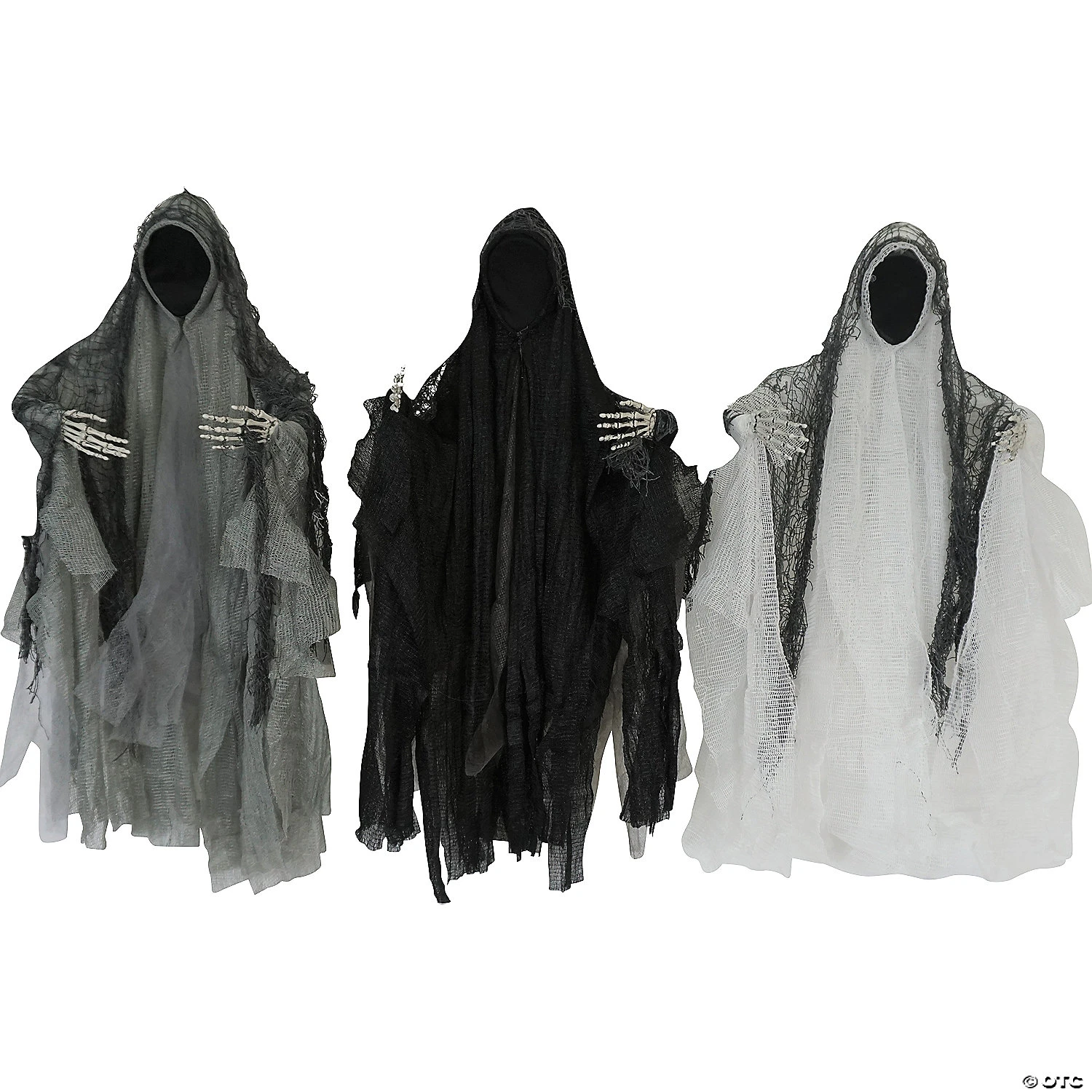 Cloaked in ghostly rags fresh from the grave this ghastly phantom comes ready to reap. Its cloths are layered for a natural appearance that will have people looking twice. When hung it creates an illusion as if floating in mid-air. Hang around all Halloween long in covered outdoor and indoor settings to bring a touch of death to any area.