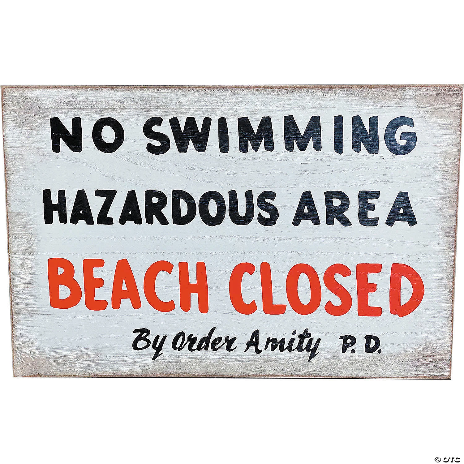 The Officially Licensed Wooden No Swimming Sign replica featured in the movie JAWS. This immaculately painted signage is detailed to perfectly represent the original from the movie. Each piece is crafted from real wood in a 12in x 18in design with a small hook for hanging. A protective graphic collector box shields the sign for safe shipping and handling. This highly collectible beauty is sure to turn heads wherever you place it and is durable enough to enjoy for years!© Universal City Studios LLC. All Rights Reserved.