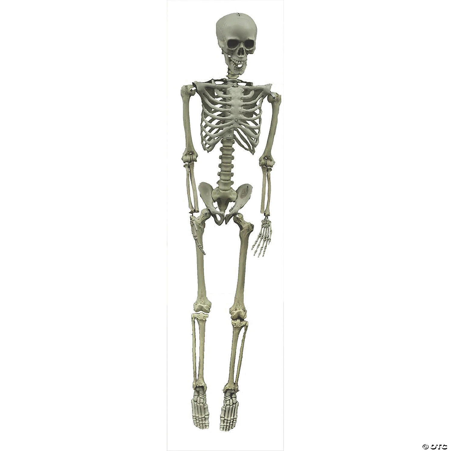 A classic Halloween prop for your haunted house or dungeon of horrors – um, we mean, Halloween party room – this skeleton decoration is easy to set up, simple, and simply frightening! Drape him in your own gauze or deck him out in a castoff Halloween costume to make him hauntingly unique. This realistic hang-up accent will serve you well year after year. Hook on top of head allows for easy display. Plastic. 5 ft.