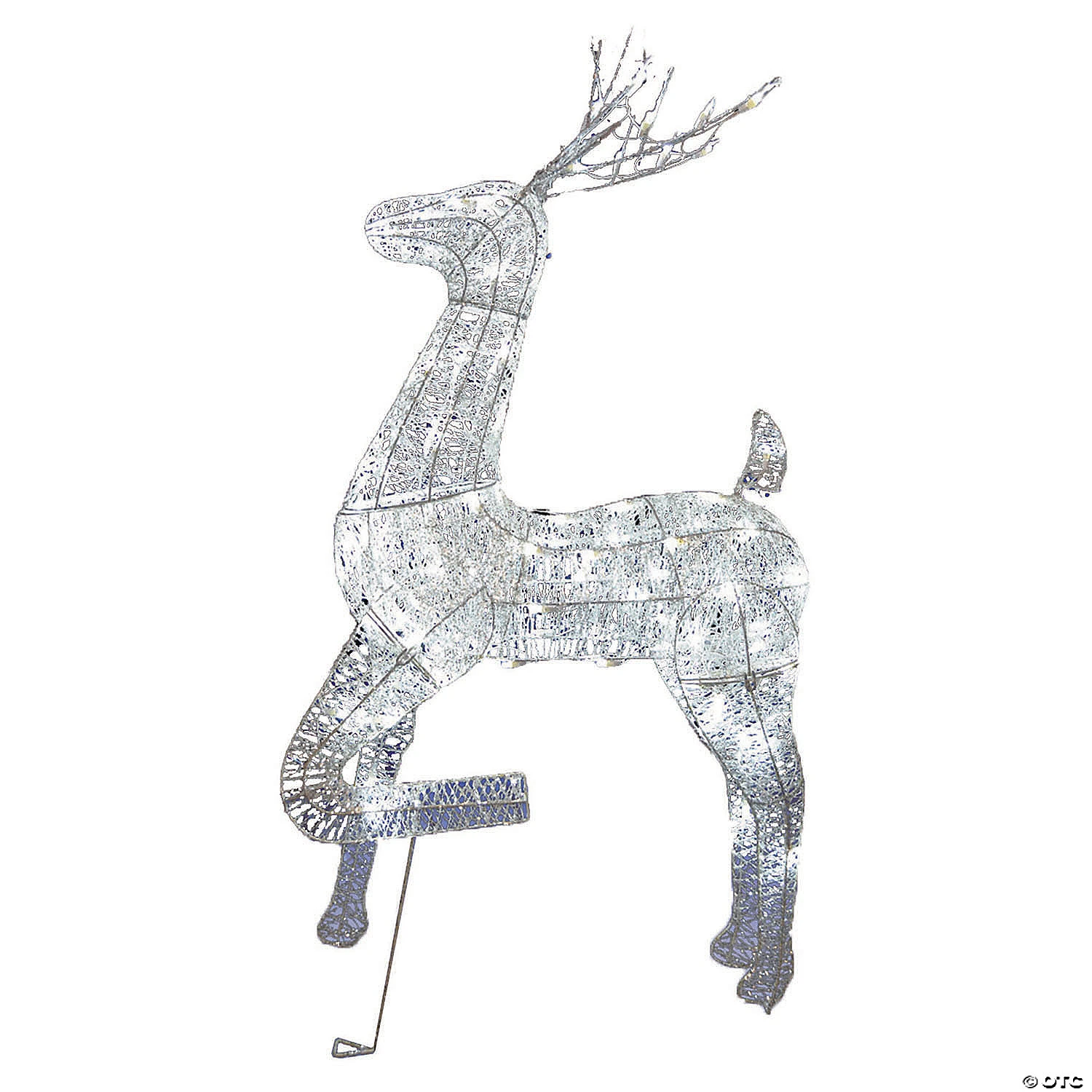A beautiful deer yard decoration that will turn your Christmas lawn display into a winter wonderland. Sparkling with white glitter and glowing with 100 mini lights, he’s designed for all weather and will add woodland charm and shine to your garden this holiday season. Leave him out all winter for a winsome effect! Includes 4 ground stakes. Metal. 27” x 12” x 4 ft.