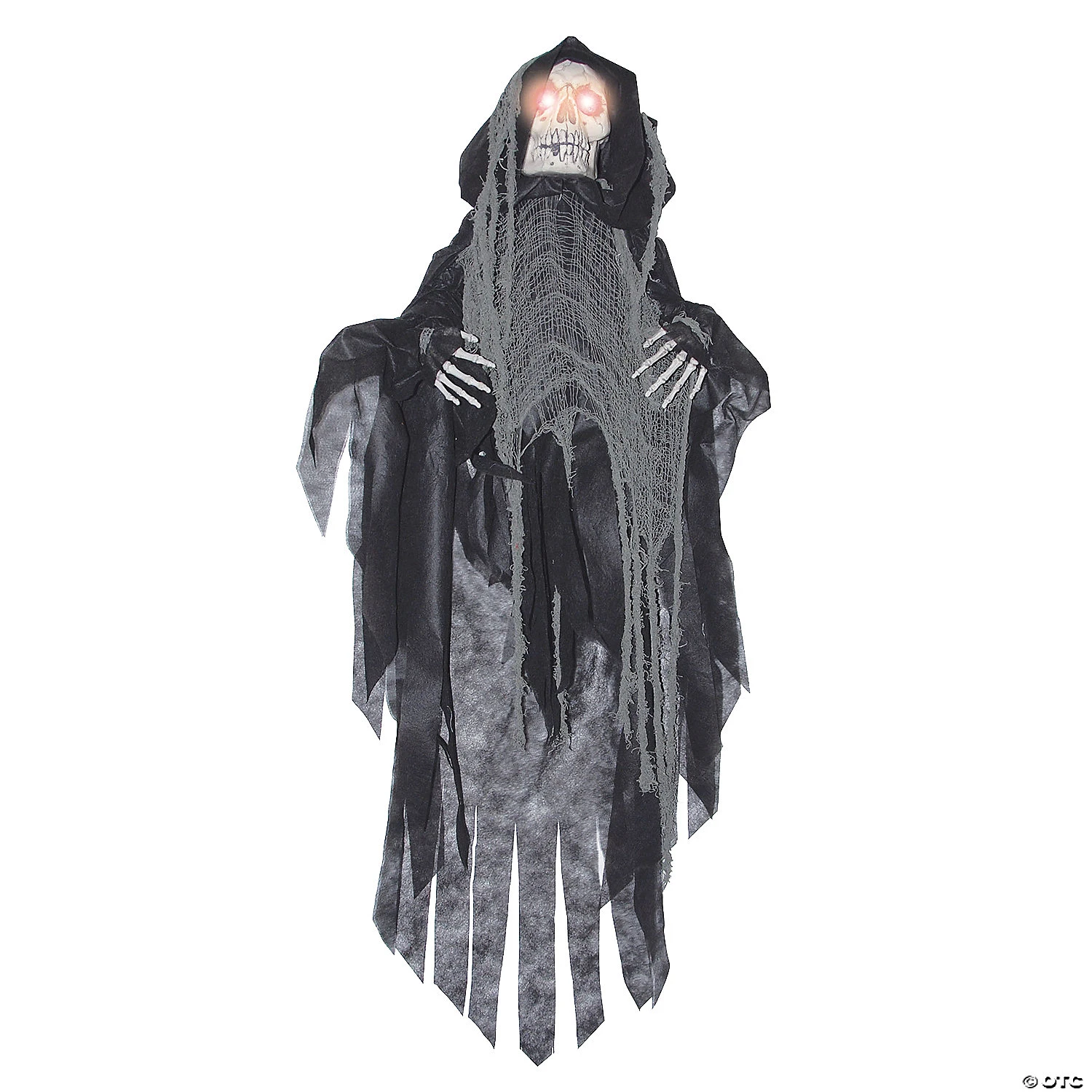 Hanging Black Torment your Trick or Treaters! Scare the “YELL” out of all of your victims. Hangin reaper with light up eyes shakes and has sounds. Sound activated. Measures L60″ x W35″ x T8″.Requires 3 AA batteries (not included).