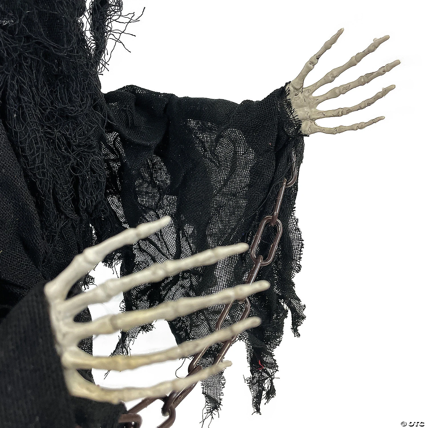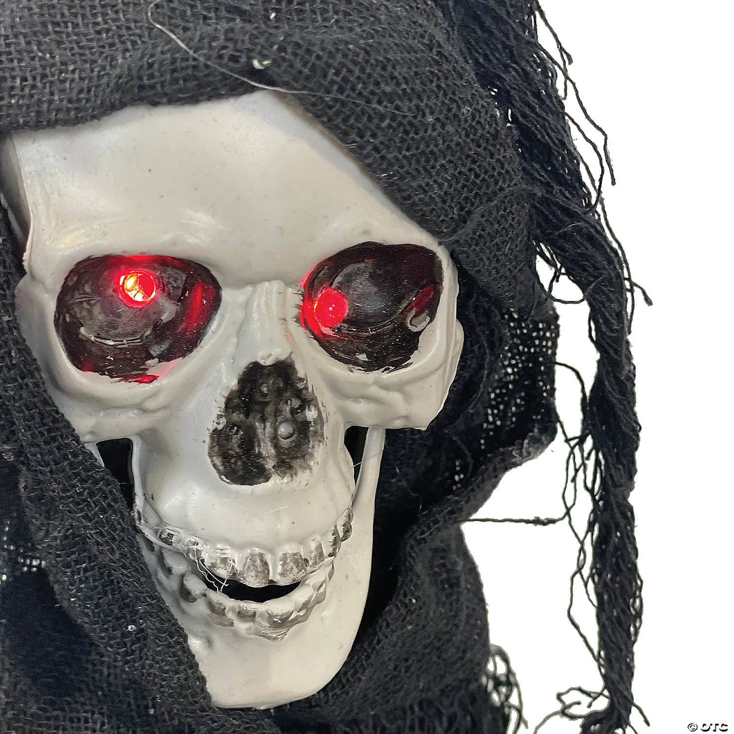 20″ Slashing Reaper DecorationThis hanging black Reaper will guide you into the party – or to your doom! Black robed reaper with moving arms, lightup eyes and horrifying sound. Measures 30″ tall. Requires 3-AA. Sound activated.