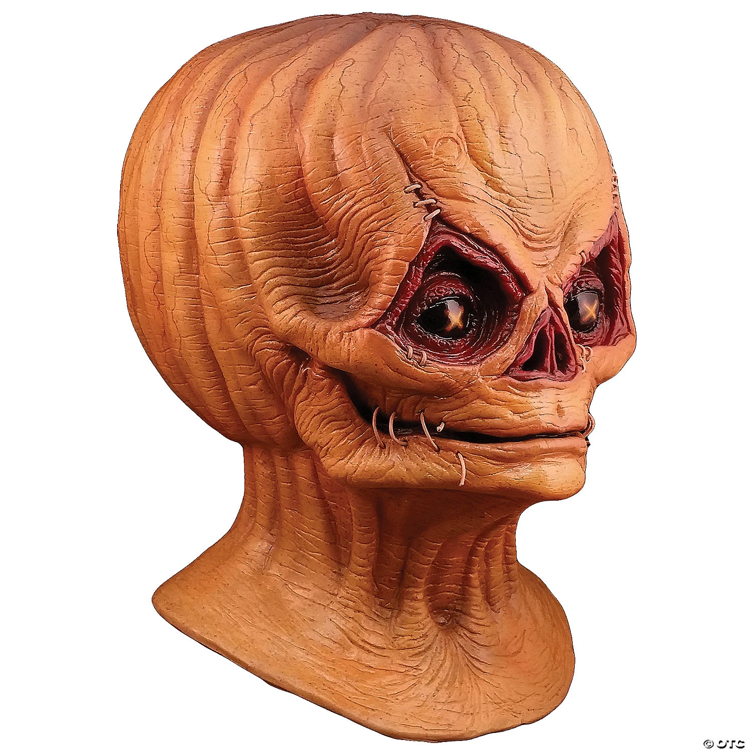 Unmasked Sam Adult Mask. Your town might be next for this pumpkin like creature to set tradition straight. Includes; Full over the head orange and red latex mask with stitched look. Available Size: One Size fits most Adults. This is an officially licensed Trick ‘r Treat mask. Please read this valuable information regarding latex products.